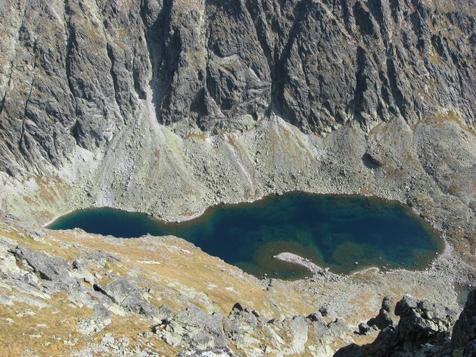 Keywords: lake mountains pond glacial pond landscape top view view reflected in water the high tatras glacial lakes ponds mountain tatry hiking trails mountain landscape water pond mountain tops rocks climbing tourism adventure shiny nature