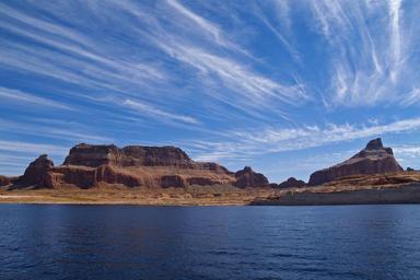 Keywords: lake powell page arizona usa outdoor activity clouds red rocks water reservoir