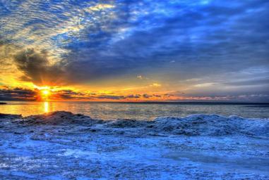 Keywords: lake scenic lake michigan landscape seascape ice snow winter sky clouds sunrise dawn