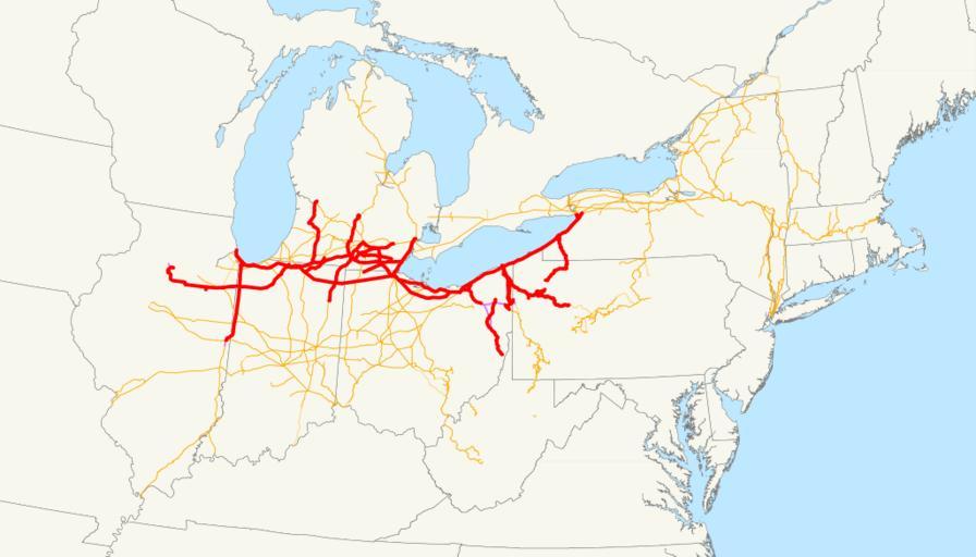 Keywords: Lake Shore and Michigan Southern Railway system map (1914).svg This is a map of the Lake Shore and Michigan Southern Railway as of 1914 drawn on the New York Central system as of 1918 with trackage rights in purple Email me if you would like a copy of the GIS data I created modified from Bureau of Transportation Statistics North American Transportation Atlas Data or if you see any errors This map does not include the Cleveland Cincinnati Chicago and St Louis Railway system which the LS MS controlled but did not operate See Image Cleveland Cincinnati Chicago and St Louis Railway system map 1918 svg for those lines It also does not include the New York Chicago and St Louis Railroad which the LS MS and NYC controlled until 1916 2008-11-13 own assumed NE2 System maps of defunct U S railroads Lake Shore and Michigan Southern Railway Maps of New York Central Railroad |