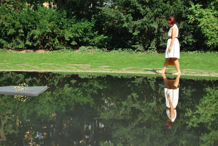 Keywords: lake water green women reflection pond berlin
