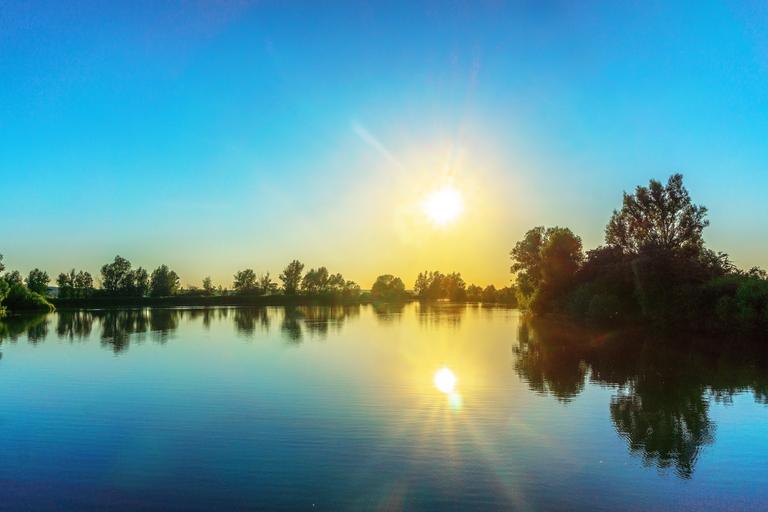Keywords: lake water trees nature outdoor altmuehlsee sun mirroring