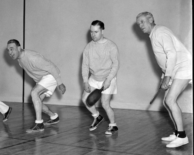 Keywords: Lambertson Ryan Mead.jpg James M Mead from New York Elmer Ryan from Minnesota and William P Lambertson from Kansas from left to right during a sports session at the Gym of the Capitol Building http //hdl loc gov/loc pnp/hec 23947 Library of Congress Harris Ewing or 1937 1938 PD-Harris-Ewing hec 23947 Cropped and some other things Members of the United States House of Representatives from Kansas Lambertson William P Members of the United States House of Representatives from Minnesota Ryan Elmer Members of the United States House of Representatives from New York Mead James M |
