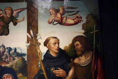 Keywords: Lamentation of Christ with Saints Giovanni Battista and Nicola da Tolentino, by Agostino Bombelli, c. 1525, view 4, oil on wood - Museo Diocesano (Genoa) - DSC01447.JPG detail title The lamentation over the dead Christ with langswitch den Heiligen Saints santi Giovanni Battista and Nicola da Tolentino c 1525 oil on wood Museo Diocesano Genoa own Daderot 2013-09-25 09 37 54 Agostino Bombelli All artwork in this museum is old enough so that it is in the public domain Photography was permitted in the museum without restriction cc-zero Uploaded with UploadWizard Lamentation of Christ with Saints Giovanni Battista and Nicola da Tolentino by Agostino Bombelli |