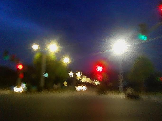 Keywords: lamp filter bokeh glass street evening traffic road lights