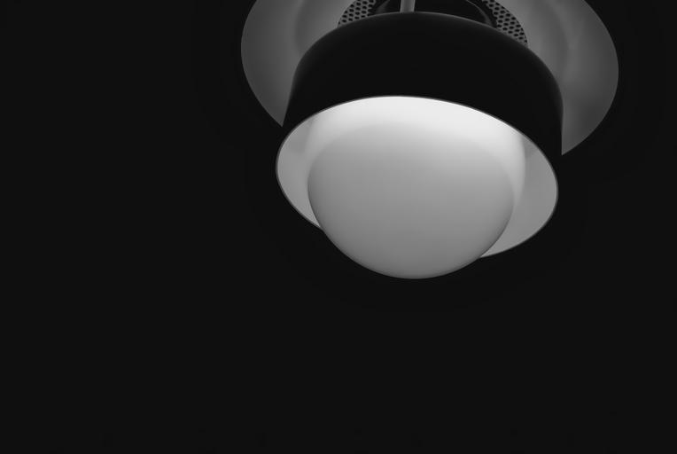 Keywords: lamp light bulb dark night contrast black white interior copy space black and white