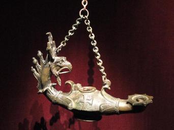 Keywords: Lamp with Griffin-Head Handle, 300s-400s AD, Early Byzantine, perhaps Syria, bronze - Cleveland Museum of Art - DSC08402.JPG en Exhibit in the Cleveland Museum of Art Cleveland Ohio USA Photography was permitted in the museum without restriction This artwork is old enough so that it is in the public domain Daderot 2012-09-07 13 23 45 Daderot cc0 cc0 Byzantine art in the Cleveland Museum of Art |