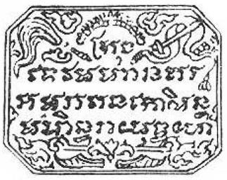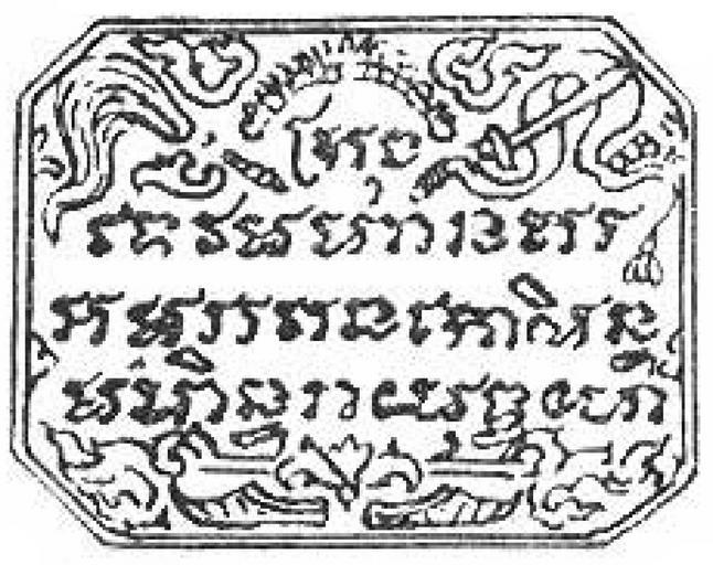 Keywords: Lanchakon - 019.jpg The Royal Emblems and the Positional Seals by Phraya Anumanratchathon Yong Sathiankoset พระราชลัญจกรและตราประจำตัวประจำตำแหน่ง โดย พระยาอนุมานราชธน ยง สฐียรโก ศศ Note The texts appearing in the picture are in Khom scripts representing Pali as follows - km ្រុង ទេ មហានគរ អមររតន ោសិន្ទ មហិន្ទរាយុទ្ធយា กฺรุง ทวมหานคร อมรรตนโกสินฺท มหินฺทรายุทฺธยา kruṅa krung devamahānagara amararatanakosinda mahindarāyuddhayā 2011-11-24 พระยาอนุมานราชธน ยง สฐียรโก ศศ ๒๔๙๓ http //ebook lib cmu ac th/full/inter/rare/2493/rare0704_2493 htm พระราชลัญจกรและตราประจำตัวประจำตำแหน่ง พระนคร โรงพิมพ์พระจันทร์ <br> Phraya Anumanratchathon Yong Sathiankoset 1950 http //ebook lib cmu ac th/full/inter/rare/2493/rare0704_2493 htm The Royal Emblems and the Positional Seals Bangkok Phra Chan Publishing House สม ด็จพระ จ้าบรมวงศ์ ธอ จ้าฟ้าจิตร จริญ กรมพระยานริศรานุวัดติวงศ์ <br> Prince Narisara Nuvadtivongs emblem custom PD-Thailand PD-TH-exempt Uploaded with UploadWizard Narisara Nuvadtivongs Seals of Thailand Khom Thai Script Images from e-books uploaded by Aristitleism |