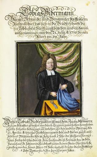 Keywords: Landauer II 019 r.jpg Transkription und weitere Informationen siehe http //www nuernberger-hausbuecher de/75-Amb-2-279b-19-r/data Tobias Bidermann; Biedermann Biedermann Schneider Hausbuch der Landauerschen Zwölfbrüderstiftung Band 2 Nürnberg 1708 “1806 Stadtbibliothek Nürnberg 279b 2° via http //www nuernberger-hausbuecher de/ 1710 anonymous PD-old-100 Hausbuch der Landauerschen Zwölfbrüderstiftung Band 2 Tailors in art |