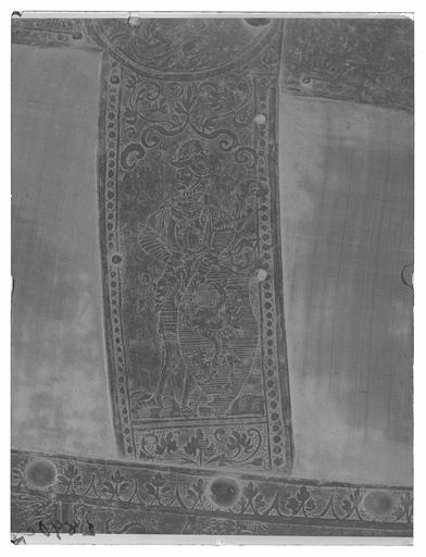 | Keywords: Ländpansar till hästrustning, troligen tillhörigt Johan III, 1500-tal - Livrustkammaren - 36659-negative.tif LSH artwork sv Bestående av 45 plåtar i varierande storlek sammanfogade med nitar och på insidan kantband av sämskat läder Längs kanterna rader av nitar med kullriga mässingsskallar Formen välvd och formad efter hästens kropp med bredare bakparti Varje sida delas in i 14 rektagulära fält klädda med mörkrött siden Kanter och flätverk med på den blanka utsidan ett heltäckande etsat mönster iform av nertill jaktscener och på banden helfigurbilder på män i olika typer av rustning varav några med sköldar Mellan figurbilderna runda medaljonger med byster av män och kvinnor i antikiserande kläder Pansarets övre del består av ett separat långsmalt stycke med framtill dekor av tätt rankverk och baktill format till en liggande hundliknande drake med lång ringlande svans uppspärrat gap och uppåtpekande öron Kroppen täckt av etsade lövliknade fjäll djurets längd 720 mm Insidan brunsvart och ojämn med tyliga slagmärken Längs nedre kanterna 20 mm breda band av brungult sämskat läder original caption century 16 velvet Färg mörkt röd material sammet - brass - steel - leather Färg brungul material läder g 8600 size mm 890 650 340 LRK Johan III av Sverige Tre Konungar på Åbo slott 1993 Björneborg - Johans stad Satakunta Museum Björneborg/Pori 2008 Trofast - hov och tass i kunglig tjänst 2010-2011 Livrustkammaren Trogna vänner - Kungliga hästar och hundar 2011-2012 Museiverket/Finlands nationalmuseum place of origin original filename LN_E02910 59504 inventory number LRK 22862 36659 CC0 Ländpansar till hästrustning troligen tillhörigt Johan III 1500-tal - Livrustkammaren - 36659 tif <gallery caption Different images of same object > File Ländpansar till hästrustning troligen tillhörigt Johan III 1500-tal - Livrustkammaren - 79460 tif File Ländpansar till hästrustning har troligen tillhört Johan III 1500-tal - Livrustkammaren - 10975 tif File Ländpansar till hästrustning troligen tillhörigt Johan III 1500-tal - Livrustkammaren - 2415 tif File Ländpansar till hästrustning troligen tillhörigt Johan III 1500-tal - Livrustkammaren - 70895 tif </gallery> <gallery caption Related objects > File Manpansar möjligen tillhörigt Johan III 1500-talets mitt - Livrustkammaren - 19537 tif LRK 22860 File Manpansar möjligen tillhörigt Johan III 1500-talets mitt - Livrustkammaren - 36657 tif LRK 22860 File Manpansar möjligen tillhörigt Johan III 1500-talets mitt - Livrustkammaren - 62337 tif LRK 22860 File Bogpansar till hästrusning troligen tillhörigt Johan III 1500-tal - Livrustkammaren - 35526 tif LRK 22861 File Manpansar möjligen tillhörigt Johan III 1500-talets mitt - Livrustkammaren - 70899 tif LRK 22860 File Bogpansar till hästrusning troligen tillhörigt Johan III 1500-tal - Livrustkammaren - 44085 tif LRK 22861 File Bogpansar till hästrusning troligen tillhörigt Johan III 1500-tal - Livrustkammaren - 79454 tif LRK 22861 File Manpansar möjligen tillhörigt Johan III 1500-talets mitt - Livrustkammaren - 79458 tif LRK 22860 File Manpansar möjligen tillhörigt Johan III 1500-talets mitt - Livrustkammaren - 53776 tif LRK 22860 File Manpansar möjligen tillhörigt Johan III 1500-talets mitt - Livrustkammaren - 45215 tif LRK 22860 File Manpansar möjligen tillhörigt Johan III 1500-talets mitt - Livrustkammaren - 10973 tif LRK 22860 File Manpansar möjligen tillhörigt Johan III 1500-talets mitt - Livrustkammaren - 28096 tif LRK 22860 File Utställningsbild sadlar hästrustningar mm - Livrustkammaren - 77173 tif LRK 22861 File Manpansar möjligen tillhörigt Johan III 1500-talets mitt - Livrustkammaren - 2413 tif LRK 22860 File Manpansar möjligen tillhörigt Johan III 1500-talets mitt - Livrustkammaren - 35519 tif LRK 22860 </gallery> |