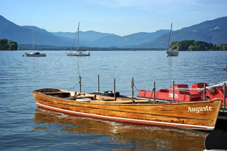 Keywords: landscape chiemgau chiemsee upper bavaria nature bavaria mountains distant view distant view boats holiday recovery rowing boat