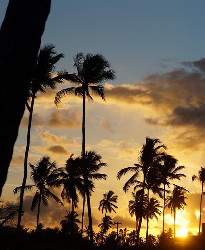 Keywords: landscape coconut tree sunset sky horizon nature eventide twilight against light afternoon sol beach brazil holidays