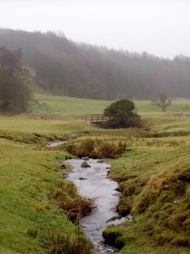 Keywords: landscape england meadow nature united kingdom english green mystical bach fog pasture mood atmosphere clouds water running