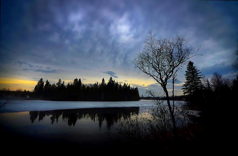 Keywords: landscape lake trees sky water clouds québec sunset silhouettes