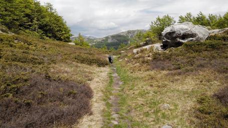 Keywords: landscape land green nature grass horizon mountain path