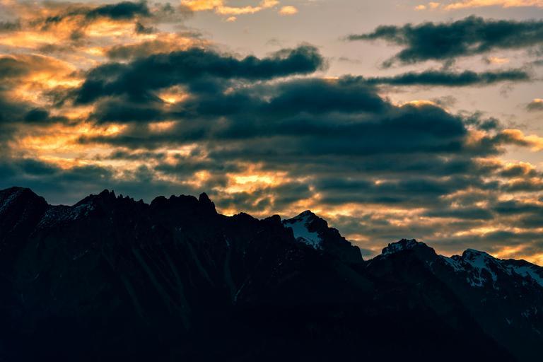 Keywords: landscape mountains mountain peaks sky clouds sunlight sunrise morning morgenstimmung nature