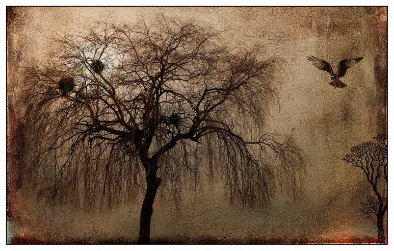 Keywords: landscape mystical tree raptor bird mood lighting fantasy composing