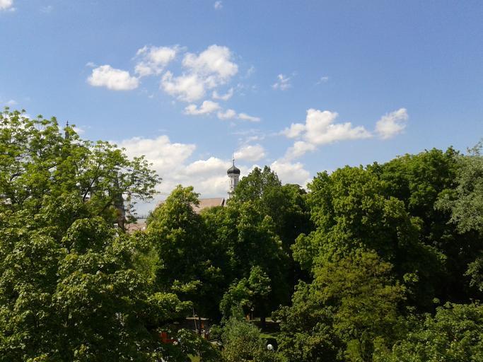 Keywords: landscape nature forest summer clouds sky ulm church steeple holy trinity church spire onion dome tower turrets summer day
