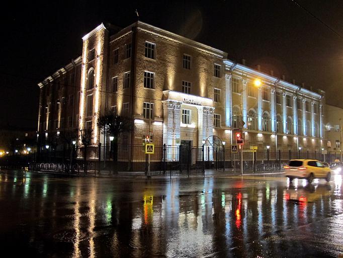 Keywords: Buildings Smolensk night road skyscraper downtown street usa travel illuminated business new horizontal urban life culture locations built contemporary skyline light people dusk twilight exposure