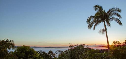Keywords: landscape palm tree fog greenery nature tropical summer paradise water tourism outdoor sunrise tranquil green rays