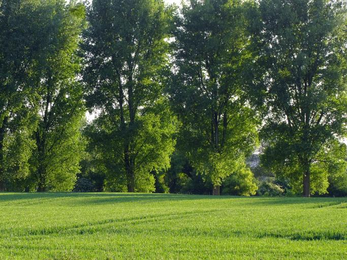 Keywords: landscape trees row of trees cornfield agriculture düsseldorf sky spirit much green everything in green germany