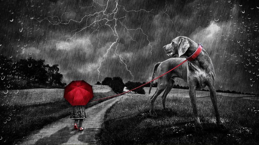 Keywords: landscape walk rain child dog away nature hiking clouds hike sky mood landscape way red shadow promenade storm flash thunderstorm forward atmosphere gloomy darkness