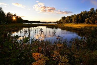 Keywords: landscape water lake nature marsh trees reflections clouds sky sun summer
