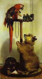 View Original:landseer_macaw_love_birds_terrier_spaniel_puppies_belonging_her_majesty_1839.jpg (414x782)