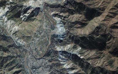 Keywords: Landslide, Neelum River, Pakistan, Image of the Day DVIDS738421.jpg en The magnitude 7 6 earthquake that shattered Pakistan on October 8 2005 caused the most damage in the region surrounding the city of Muzaffarabad about 10 kilometers southwest of the earthquake's epicenter The quake flattened buildings and triggered landslides throughout Kashmir The Ikonos satellite captured an image of a landslide top in Makhri a village on the northern outskirts of Muzzaffarabad on October 9 2005 The western face of the mountain has collapsed sending a cascade of white-grey rock into the Neelum River The landslide is likely only one of many to occur along the river which is almost unrecognizable after the earthquake The blue waters seen on September 15 2002 have turned brown with the dirt of landslides upstream The landslide shown here blocked the river's normal course forcing the Neelum to abandon the u-shaped bend seen in the center of the lower image for a more direct course over its former brown and white banks to its northern reaches The damage to the city is not visible even in this detailed image but the media report that the city has nearly been destroyed More than 51 300 people have died and at least 3 million are homeless making aid organizations call the disaster worse than the 2004 Indian Ocean tsunami The earthquake occurred along the western end of the Himalaya Mountains where tectonic motion is pushing India under Tibet The motion of the continent builds pressure over time which is relieved in massive earthquakes Scientists have been predicting a major earthquake in the region The last catastrophic earthquake to rattle the region occurred in 1555 though quakes similar to the October 2005 quake have occurred as recently at 1974 With a death toll over 50 000 the October 2005 earthquake is the most deadly earthquake to occur on the Indian subcontinent geologist Roger Bilham of the Cooperative Institute for Research in Environmental Sciences reported in his cires colorado edu/~bilham/Kashmir 202005 htm analysis of the quake NASA Identifier neelum_iko_2002258_xlrg 2011-07-05 Glenn Research Center https //www dvidshub net/image/738421 738421 2012-10-17 23 59 WASHINGTON DC US PD-USGov Images from DoD uploaded by Fæ Neelum River landslide Earthquake-triggered landslides in Pakistan |