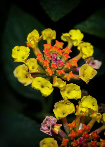 Keywords: lantane lantana blossom bloom mediterranean yellow orange flower lantana camara garden ornamental plant plant verbenaceae pink purple bokeh container plant lantana camara cultivar close color