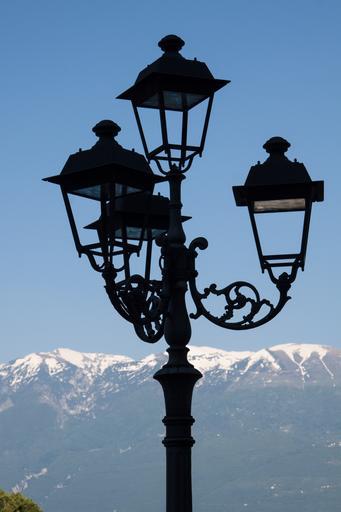 Keywords: lantern street lamp mountains snow sky landscape
