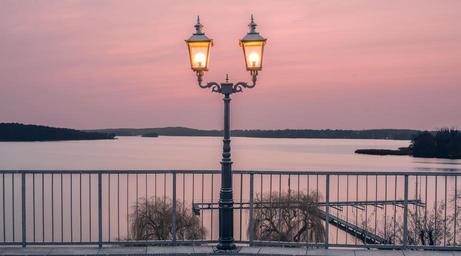 Keywords: lantern water sky gold lamp lake europe mirroring street lamp shimmer light architecture berlin wannsee terraces wannsee lighting modern contrast tourism