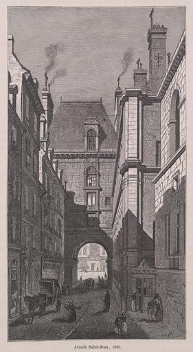 | Keywords: L'Arcade Saint-Jean.jpg The Arcade Saint-Jean is seen here from the opposite end of a very narrow street typical of early nineteenth-century Paris With the construction of so many new buildings around it the archway became so crowded in on both sides that only its roof and spires were visible from a distance by 1830 1875-1882 lithograph 20 1 x 11 2 cm Institution Brown University Library object history exhibition history credit line accession number 3-SIZE DC707 H691x 1875 v 1 1163692220187500 PD-old-100 Lithographs of Paris Paris in the 1870s Images of Paris from the Brown University Library Paris à travers les âges Arcades in Paris |