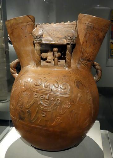 | Keywords: Large double-spouted architectural vessel, Peru, North Coast, Chimu, 9th-12th century AD, earthenware and pigment - De Young Museum - DSC00390.JPG en Exhibit in the De Young Museum San Francisco California USA This artwork is in the public domain because the artist died more than 70 years ago Photography was permitted in the museum without restriction 2013-11-05 15 05 19 own Daderot other versions cc-zero Ceramics of the Americas in the De Young Museum Uploaded with UploadWizard Chimu pottery |