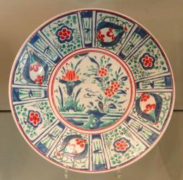 Keywords: Large Export Dish, c. 1660-1670, Arita, hard-paste porcelain with overglaze enamels - Gardiner Museum, Toronto - DSC00434.JPG Exhibit in the Gardiner Museum Toronto Ontario Canada This artwork is in the public domain because the artist died more than 70 years ago Photography was permitted in the museum without restriction Daderot 2012-10-16 14 07 08 Daderot cc0 cc0 Japanese pottery in the Gardiner Museum |