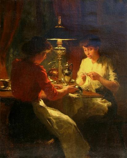 | Keywords: L'argenterie.jpg en Cleaning utensils silver in the glow of oil lamp oil on canvas 16 34 x 13 19 inches fr Nettoyage des ustensiles en argent à la lueur de la lampe à pétrole huile sur toile 41 5 x 33 5 cm Collection privée <br />Photographie by Méticuleux Marcel Rieder 1862-1942 Marcel Rieder Maids in art |