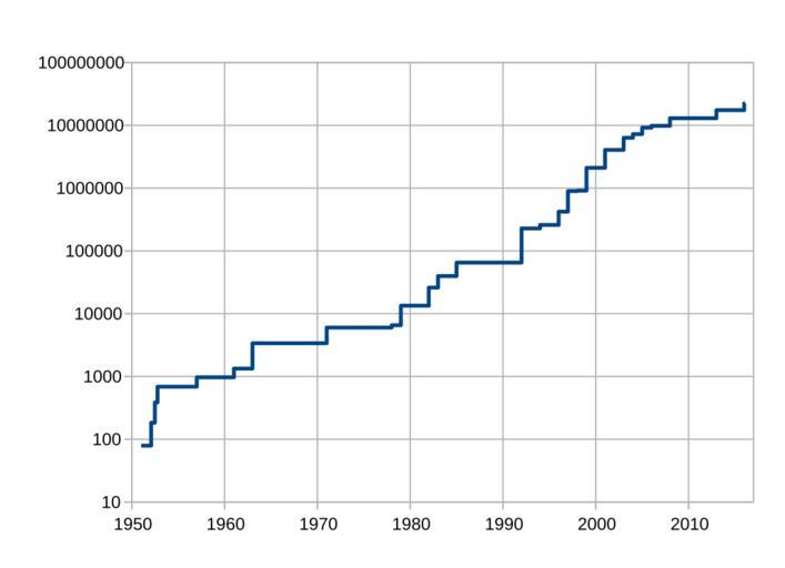 Keywords: Largest known prime number.svg en Largest known prime number 1950-2013 based on data from http //primes utm edu/notes/by_year html Prime Pages it Il numero primo più grande conosciuto tra il 1950 e il 2013; dati da http //primes utm edu/notes/by_year html Prime Pages Own Dr Zimbu 5-02-2013 File Largest known prime number by year svg Prime numbers World records |