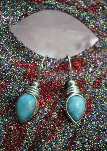 Keywords: larimar sterling silver earrings stone gem gemstone natural cabochon setting bezel jewelry jewel fashion accessories crystal quartz semiprecious sterling