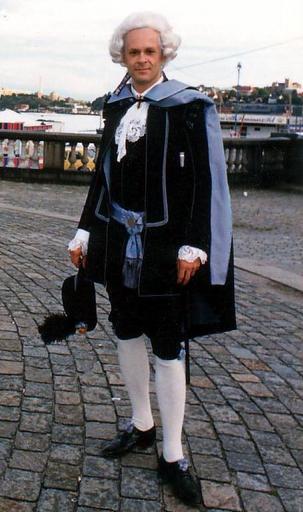 Keywords: Lars Jacob in Nationella dräkten 1986.jpg en The Swedish costume Nationella dräkten worn by Lars Jacob as released by image creator Lars Jacob Prod<br>Place Skeppsbron at the statue of costume's creator Gustav III Stockholm Sweden User EmilEikS/Template Southerly Clubs Stefan Backes Stevie Baker on LJP assignment 1986 Southerly Clubs Image Archives National Costume of Sweden of 1778 Historical costumes Lars Jacob modelling performances shows and direction Ristesson History Lars Jacob Prod Capes Perriwigs Portrait photographs of men at full length Jabots |