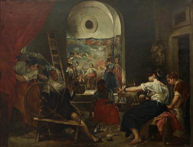 Keywords: Las hilanderas, copia del original de Velázquez (Real Academia de Bellas Artes de San Fernando).jpg Artwork Creator Alejandrina Gessler y Lacroix Esta obra es una copia de la La fábula de Aracne que fue pintada por Diego Velázquez hacia 1657 y que se conserva en el madrileño Museo del Prado 1872 oil on canvas Size cm 94 69 Institution Real Academia de Bellas Artes de San Fernando http //ceres mcu es/pages/Main accession number 0281 http //ceres mcu es/pages/Main PD-old-100 Las Hilanderas Paintings after Diego Velázquez Alejandrina Gessler y Lacroix 19th-century paintings in the Royal Academy of Fine Arts of San Fernando 1872 paintings in Spain |