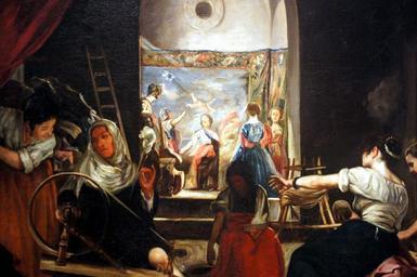 Keywords: Las hilanderas copia (Ulpiano Checa).JPG Artwork Creator Ulpiano Checa Las hilanderas Oil on canvas cm 62 5 80 5 Museo Ulpiano Checa Colmenar de Oreja Comunidad de Madrid España Firmado ángulo inferior izquierdo Copia de Ulpiano Checa En el reverso con grafito Copia Los alumnos de la Escuela de Bellas Artes de San Fernando estaban obligados a realizar copias de las obras de artistas consagrados Esta obra de juventud de Checa perteneció a Don Pedro Pérez Lemaur Diputado a Cortes en Madrid que debió conocer a Don Luis Ballester protector de Ulpiano Checa La oscuridad de este lienzo no debe imputarse al joven pintor puesto que cuando realizó la copia la obra original de Velázquez nunca había sido limpiada por lo que Checa se limitó a plasmar las condiciones en que se encontraba Poniol PD-old-75 Other versions cc-by-sa-3 0 Uploaded with UploadWizard Ulpiano Checa Pintura espa |