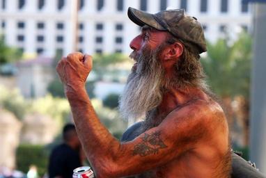 Keywords: las vegas street photography man beard hat rock and roll nevada strip