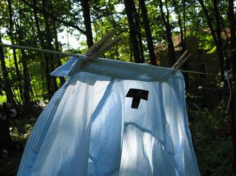Keywords: laundry clothing clothespin clean housework cotton blue wash washing household dry domestic garment apparel outdoor clothesline sunshine lifestyle fresh chores shirt