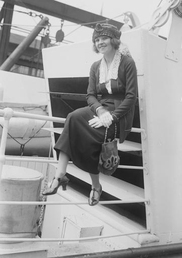 Keywords: LaurellShipRailing.jpg Actress and model Kay Laurell seated on ship railing Full length portrait wearing dress gloves hat shoes purse Bain News photo via Library of Congress website http //hdl loc gov/loc pnp/ggbain 32871 border cropped and converted from TIFF to jpg before uploading to Commons Not dated Looks c late 1910s - early 1920s Uncredited photographer for Bain News Service PD-Bain Kay Laurell Black and white photographs of sitting women Women with purses Female headgear Women facing left 1910s portrait photographs 1910s fashion 1920s fashion |