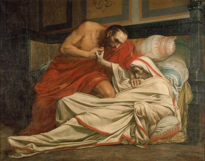 Keywords: Laurens Mort de Tibère (49 3 23).jpg oil canvas Size cm 223 177 Institution Musée Georges Labit object history exhibition history credit line Legs de Georges Labit à la Ville de Toulouse en 1919 accession number 49 3 23 Photothèque Musée des Augustins Toulouse photo STC Ville de Toulouse PD-old-100 1864 paintings Paintings in the Musée Paul-Dupuy Jean-Paul Laurens |