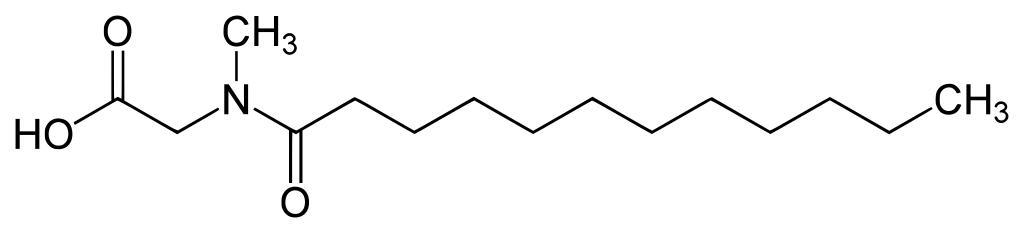 Keywords: Lauroylsarcosine.svg en Lauroylsarcosine; sarkosyl; Hamposyl L; Lauroyl sarcosine de Sarkosyl; N-Lauroylsarcosin Own Yikrazuul 2008-08-13 Carboxylic acids Surfactants Lipids Fatty acid amides