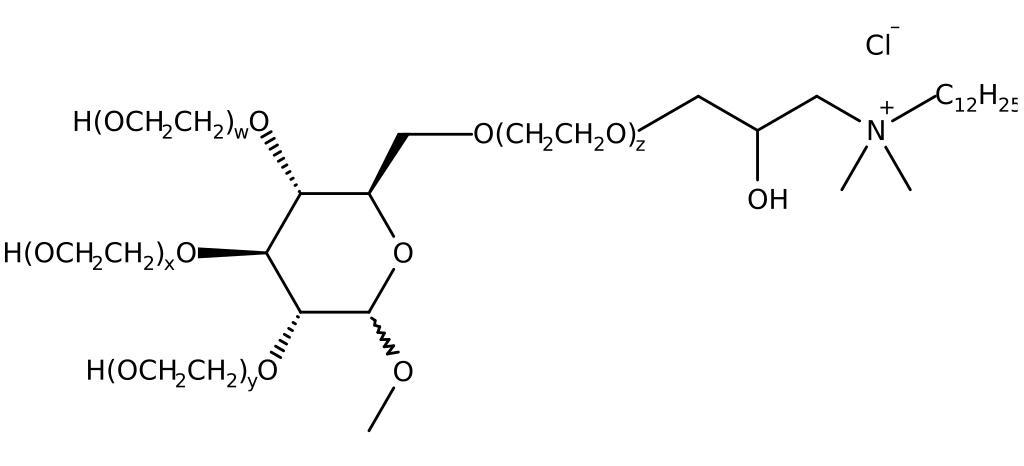 | Keywords: Lauryl methyl gluceth-10 hydroxypropyl dimonium chloride.svg Chemical structure of lauryl methyl gluceth-10 hydroxypropyl dimonium chloride Own 12 31 8 July 2014 UTC Ed Edgar181 Quaternary ammonium compounds Chloride salts of organic compounds Glucosides Polyethers |