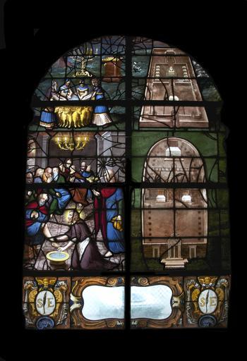 | Keywords: Lavement mains synagogue lavement pieds église vitrail saint etienne du mont.jpg en Stained glass window early 17th century Church Saint Etienne du Mont in Paris Above Rabbis washing their hands under a menorah and the Ark of the Covenant and a plan of the Synagogue Below Christ washing the feet of the Apostles and a plan of the Church fr Vitrail début XVIIème siècle salle des catéchismes de l'Eglise Saint Etienne du Mont à Paris En haut les rabbins se lavent les mains sous un chandelier et l'Arche d'Alliance à droite un plan symbolique de la Synagogue En bas le Christ lave les pieds des Apôtres le Jeudi Saint à droite un plan symbolique de l' Eglise own Jebulon 48 50 47 3 N 2 20 54 4 E Cc-zero QualityImage Stained glass window number 6 of Chapelle des Catéchismes Jesus Christ washing the feet of the apostles on stained glass windows Synagogues in art Rabbis in art 17th-century stained glass windows Menorot on stained glass windows The Ark of the Covenant on stained glass windows Quality images by Jebulon Quality images of stained glass in Paris |