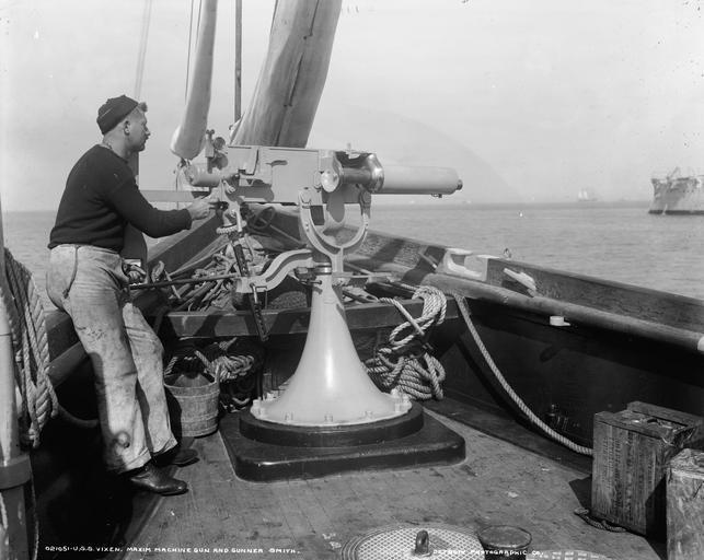 Keywords: blackandwhite monochrome black and white LC-DIG-DET-4a14810: US Navy yacht, USS Vixen (PY 4), Maxim machine gun and Gunner Smith. Published by Detroit Publishing Company, probably between 1890 and 1901. Vixen served during the Spanish-American War and World War I. (5/29/2015). LC-DIG-DET-4a14810: US Navy yacht, USS Vixen (PY 4), Maxim machine gun and Gunner Smith. Published by Detroit Publishing Company, probably between 1890 and 1901. Vixen served during the Spanish-American War and World War I. (5/29/2015). |
