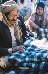 | Keywords: commerce haat handicrafts market weaving nepal people Date: 1964 Location: Bhojpur, Bhojpur Description: Man sells wool blankets woven from raw wool using only natural colors. Those sold in Bhojpur came from Okhaldunga District to the west. They came in many sizes and thicknesses, some double-thick, and of excellent quality. They were highly prized, relatively expensive, and used as rugs on the floors of many wealthier village homes. Date: 1964 Location: Bhojpur, Bhojpur Description: Man sells wool blankets woven from raw wool using only natural colors. Those sold in Bhojpur came from Okhaldunga District to the west. They came in many sizes and thicknesses, some double-thick, and of excellent quality. They were highly prized, relatively expensive, and used as rugs on the floors of many wealthier village homes. |